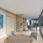 Su arquitectura curva maximiza las vistas y la luz natural, mientras que los interiores, completamente amueblados y diseñados por: “Adriana Hoyos Design Studio”, elevan cada espacio con elegancia, funcionalidad y un carácter contemporáneo inspirado en la vida frente al mar.