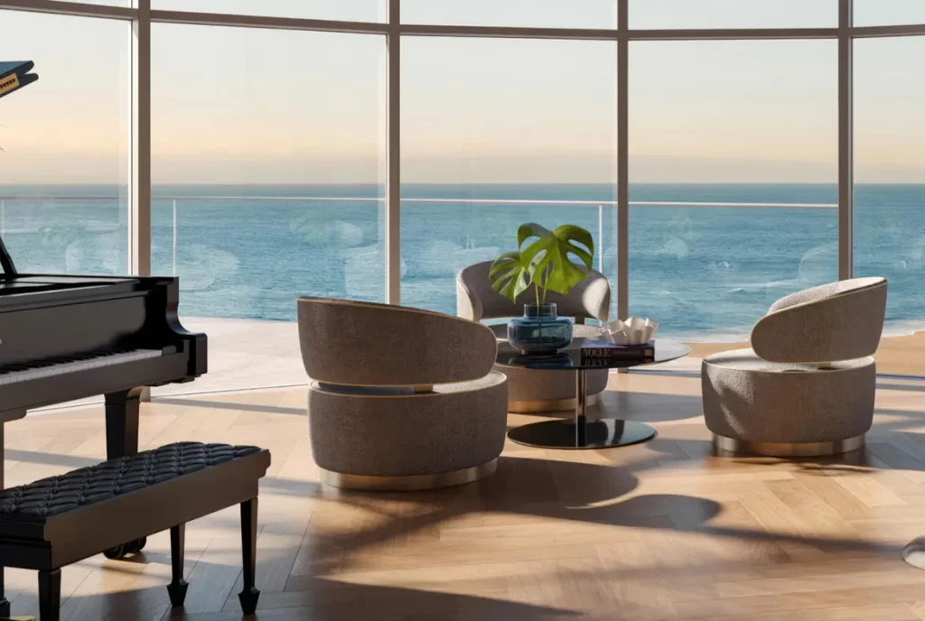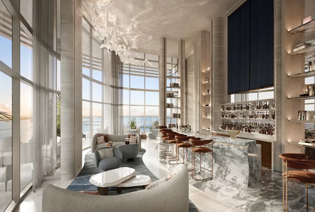 Con más de 70 000 pies cuadrados de espacios interiores, The St. Regis Residences Sunny Isles Beach Miami ofrece amenidades y servicios de nivel cinco estrellas: