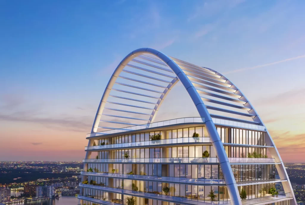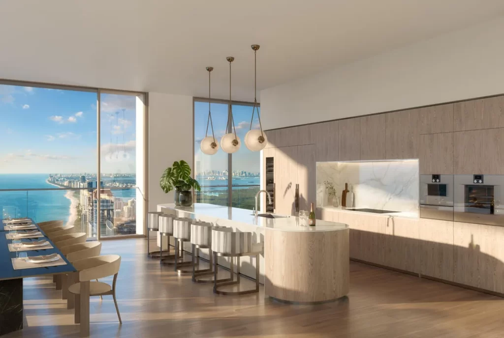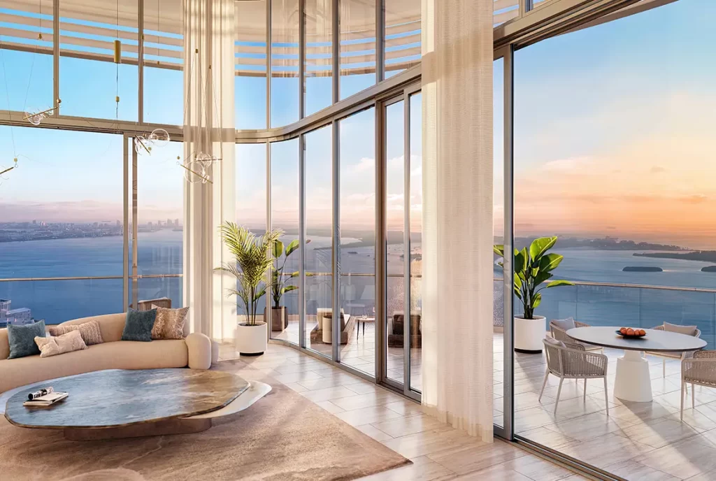El proyecto está compuesto por una torre residencial de 46 pisos, con vistas despejadas al horizonte de Miami, la Bahía de Biscayne y el Océano Atlántico.