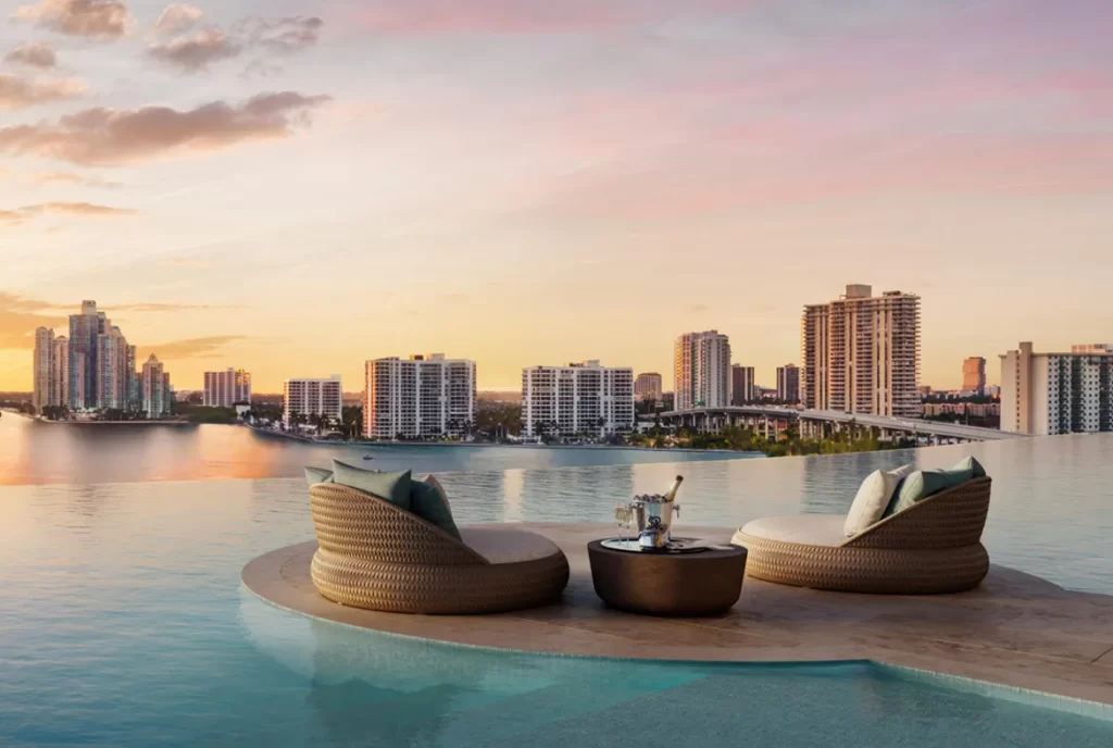 Situado en una de las zonas más exclusivas de Miami, Sunny Isles Beach, el proyecto ofrece acceso directo a playas de arena blanca y cercanía a los principales puntos de lujo del sur de Florida: